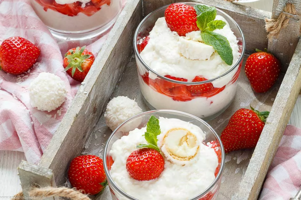 Raffaello-Creme – Dessert mit Erdbeeren und Kokos