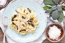 Spaghetti in Salbeibutter mit Knoblauch und Parmesan