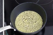 - In einem Topf erwärmst Du nun auf mittlerer Hitze das Olivenöl bis es schön heiß ist. Der "Kochlöffeltest" hilft Dir das zu bewerten. Einfach einen Holz-Kochlöffel ins Öl halten, wenn das Öl Blasen an der Oberfläche wirft ist es heiß.