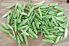 - In der Zwischenzeit den Spargel waschen, trocknen und die holzigen Enden abschneiden sowie, wenn Du das möchtest, im unteren Drittel mit einem Sparschäler schälen. Im Anschluss die Spargelstangen in ca. 3 cm lange Stücke schneiden.