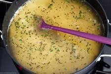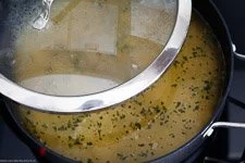 - Jetzt gibst Du die vorbereitete Gemüsebrühe hinzu.