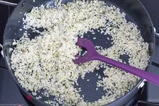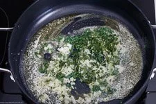 - Jetzt den Risotto Reis dazu geben und ebenfalls für ungefähr 1/2 Minute mit dünsten.