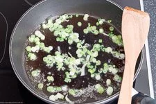 - Dann erwärmst Du 1 EL Butter in einer ofenfesten Pfanne und dünstest darin die Frühlingszwiebeln kurz an.HINWEIS: Wenn Du keine ofenfeste Pfanne besitzt, kannst Du alles später in eine flache gefettete Auflaufform geben.