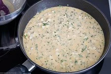 - Die Eiersahne gießt Du nun über Deine Spinat-Ravioli in der Pfanne und gibst sie für ca. 20-25 Minuten auf der mittleren Schiene in den vorgeheizten Ofen.