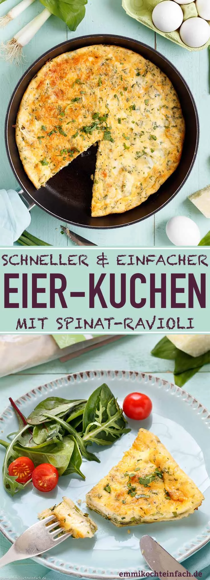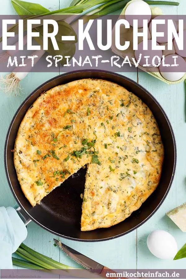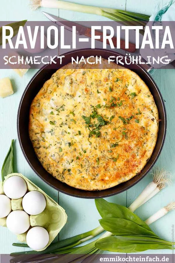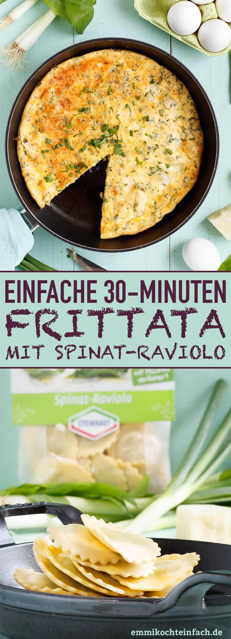 Mit einem knackigen Salat eignet sich die Spinat-Raviolo Frittata übrigens wunderbar als leckere und gesunde Hauptmahlzeit und durch die Eier ist sie ein perfekter Fleischersatz. Es sei denn, man hat Lust sie mit Wurst und Schinken zu verfeinern, was übrigens auch wunderbar mit einer Frittata harmoniert. Sie ist auch als Zwischenmalzeit prima oder auf einem Buffet, denn man kann die Spinat-Raviolo Frittata warm, lauwarm aber auch ohne weiteres kalt verzehren.