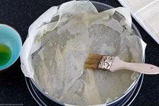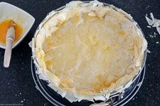 - Jetzt schichtest Du 8 Strudelteigblätter in Deine leicht eingeölte Springform: Immer etwas versetzt, so dass die Strudelteigblätter über den Rand hängen. Jedes Strudelteigblatt bepinselst Du leicht mit Olivenöl bevor Du das Nächste darauf legst.