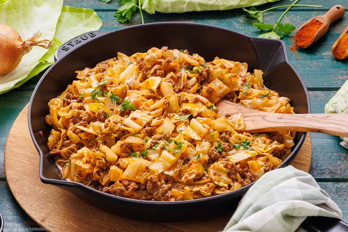 Kohl und Hack – eine himmlische Kombination. Dazu ist meine Spitzkohlpfanne mit Hackfleisch im Handumdrehen zubereitet und du benötigst nur eine Pfanne. Das heißt minimaler Aufwand!