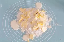 - Für den Teig knetest Du alle Zutaten, sprich das Mehl, Backpulver, Sahne, kalte Butter mit kalten "Back-Händen" (Hände einfach unter kaltes Wasser halten) oder der Küchenmaschine zu einem glatten Teig - wie bei einem Mürbeteig.