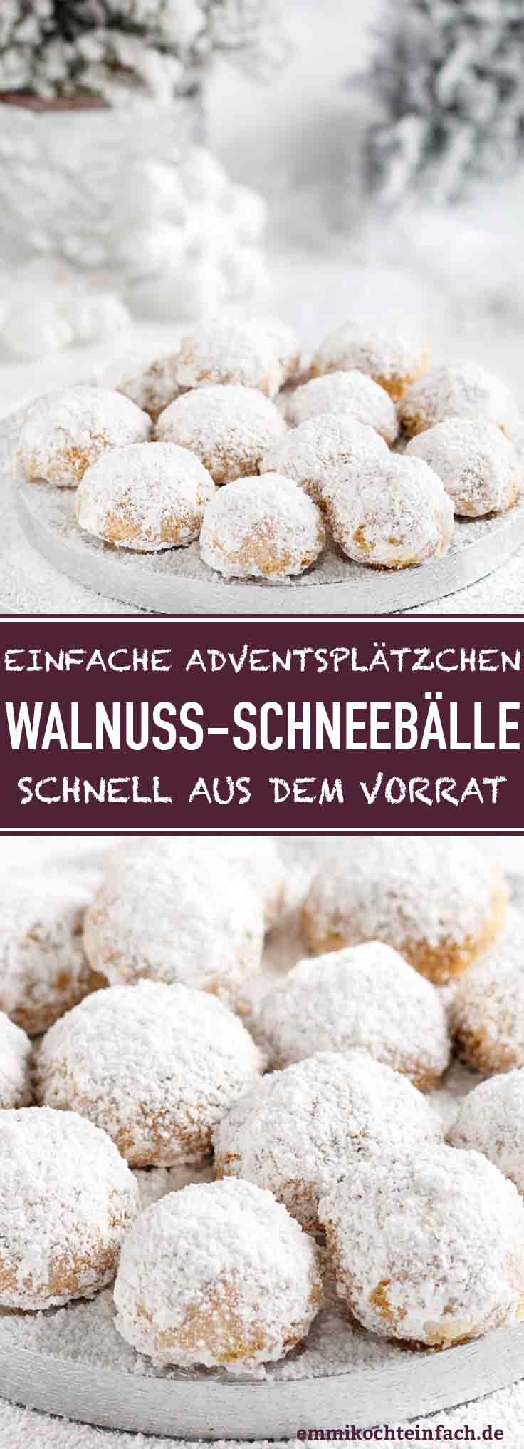 Deshalb gibt es passenderweise zu den Schnee-Weihnachtsliedern mein Rezept für leckere Walnuss Schneebälle, die Du ganz einfach und schnell, ohne viele Zutaten und komplett aus dem Vorrat zubereiten kannst. Du musst den Teig noch nicht einmal kühlen, was Dir einiges an Zeit spart.