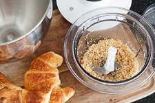 - Jetzt häckselst Du die Croissants in einer Küchenmaschine oder mit dem Stabmixer so fein es geht und gibst sie in eine Schüssel.HINWEIS: Je nach Größe Deiner Schüssel/Küchengerätes musst Du das Häckseln eventuell in zwei bis drei Schritten machen.