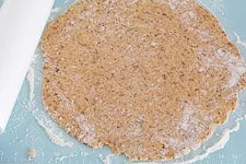 - Jetzt rollst Du den Teig mit einem Nudelholz passend aus. TIPP: Du kannst den Teig wie jeden anderen auch flicken, wenn ein "Loch" entstanden ist. Einfach ein Stückchen draufsetzen und festdrücken.