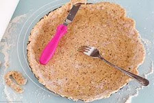 - Im Anschluss in Deine gefettete Quiche-Form geben, mit der Gabel mehrmals einstechen, den Rand zurecht schneiden und für 12 Minuten im heißen Ofen auf der mittleren Schiene vorbacken.
