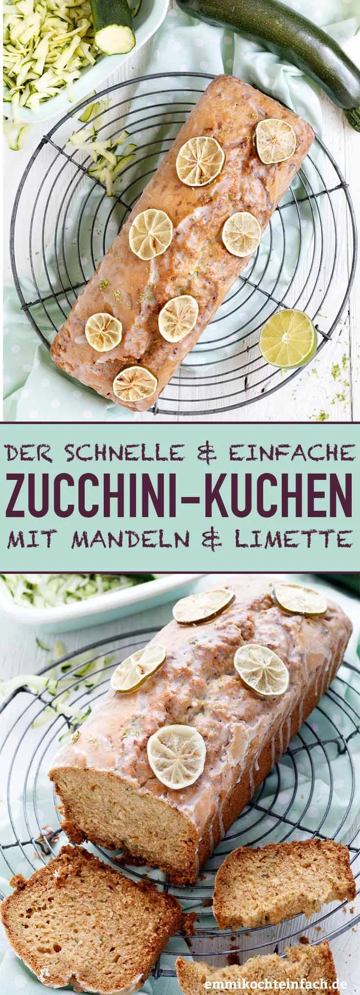 Der saftige Zucchinikuchen ist ein einfach zu backender Sommerkuchen und schmeckt nicht zu süß. Frische Zucchini, gemahlene Mandeln und Limette sind die Hauptzutaten für den Zucchini Kuchen mit schneller Zubereitungszeit.