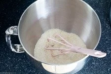 - Dann vermengst Du in einer Schüssel die gemahlenen Mandeln mit der Speisestärke und dem Zucker.