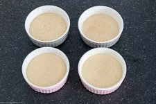 - Jetzt verteilst Du den Teig gleichmäßig auf Deine vier Auflaufförmchen.